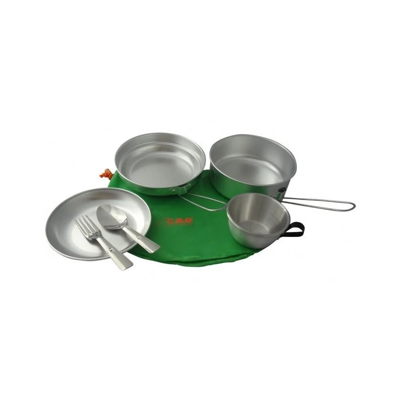 Popote scout une personne CAO OUTDOOR « L’authentique » avec 9 pièces en aluminium pour le camping et la randonnée.